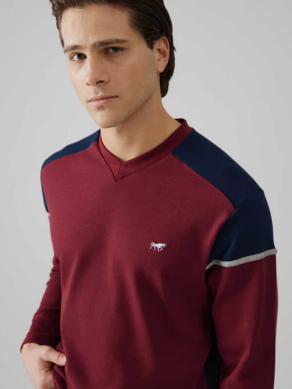 Χειμερινή πυζάμα, ζεστή, από 90% βαμβάκι και 10% νάιλον. Το σετ περιλαμβάνει μπλούζα με V λαιμόκοψη, κέντημα στο στήθος και παντελόνι ίσιο.