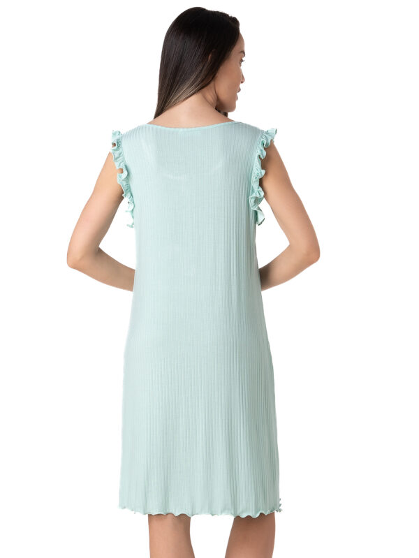 Καλοκαιρινό νυχτικό από την νέα συλλογή της Harmony. Σε γαλάζιο χρώμα με διακριτικό λευκό πουά, δαντέλα στο ντεκολτέ και στο κάτω μέρος, και ρυθμιζόμενες ράντες.