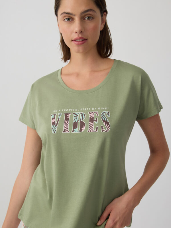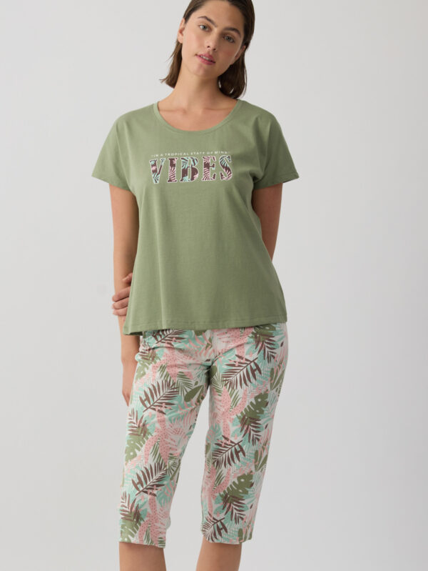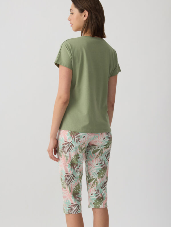 42,90 €- Σετ πυζάμας από ύφασμα με σύνθεση 50% βαμβάκι και 50% TENCEL™ που προσφέρει εξαιρετικά απαλή αίσθηση και δροσερή άνεση. Το σετ αποτελείται από μονόχρωμο κοντομάνικο τοπ με διακοσμητικό τύπωμα στο στήθος και εμπριμέ κοντό σορτς με ελαστική μέση για άνετη εφαρμογή.
