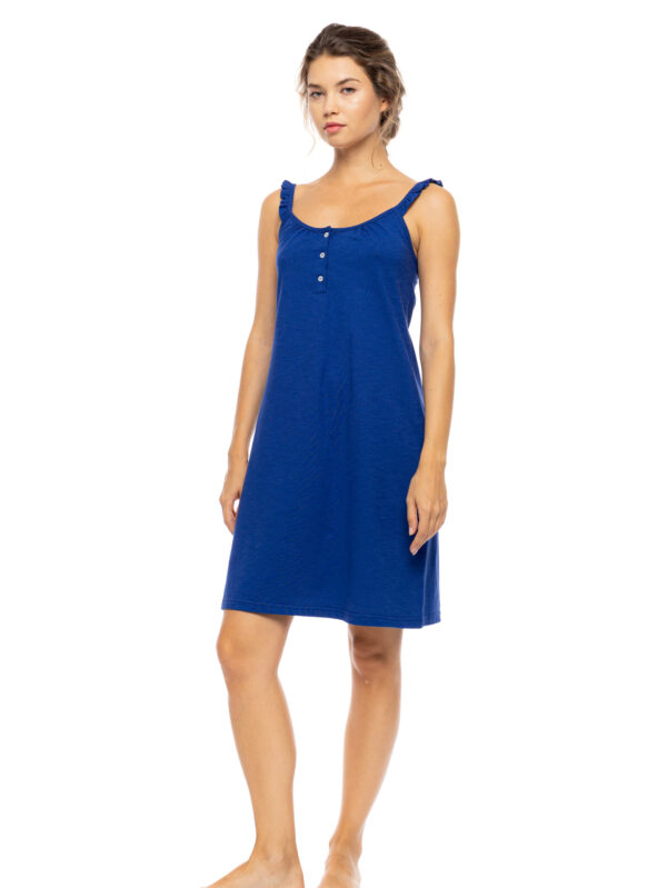 Καλοκαιρινό νυχτικό από την νέα συλλογή της Harmony. Σε γαλάζιο χρώμα με διακριτικό λευκό πουά, δαντέλα στο ντεκολτέ και στο κάτω μέρος, και ρυθμιζόμενες ράντες.