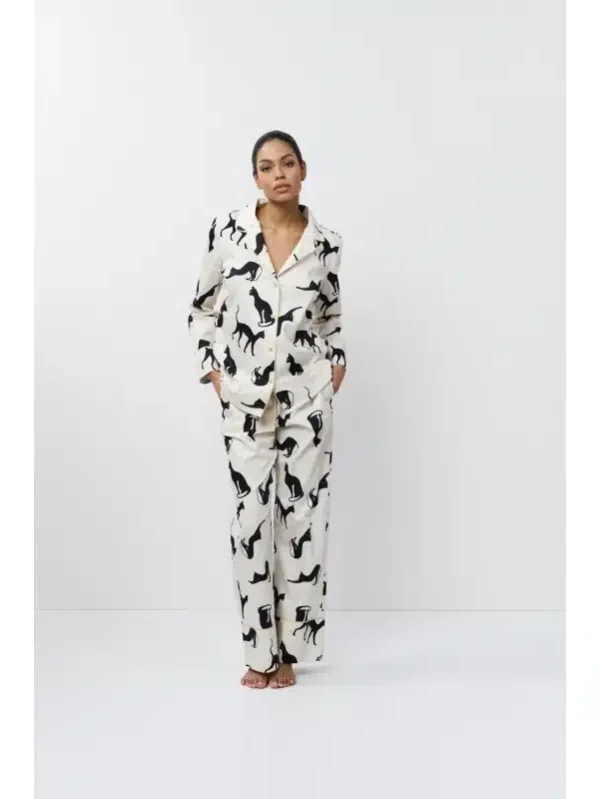 Γυναικεία πιτζάμα από την νέα συλλογή της Aruelle. Κουμπωτή μπλούζα και παντελόνι σε άνετη γραμμή, από 100% βαμβακερή ποπλίνα.