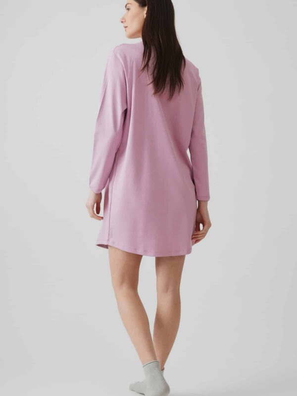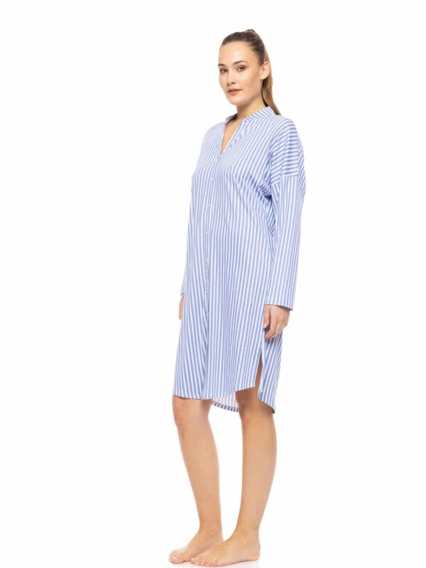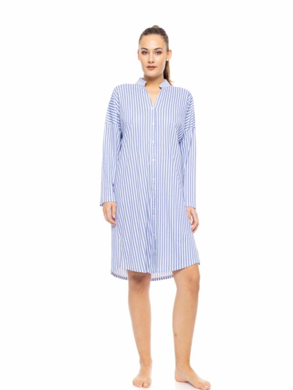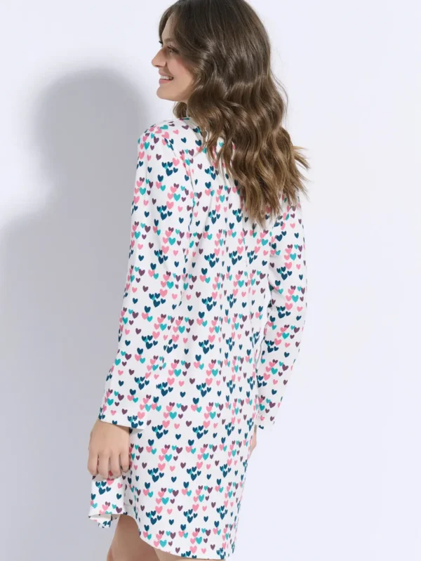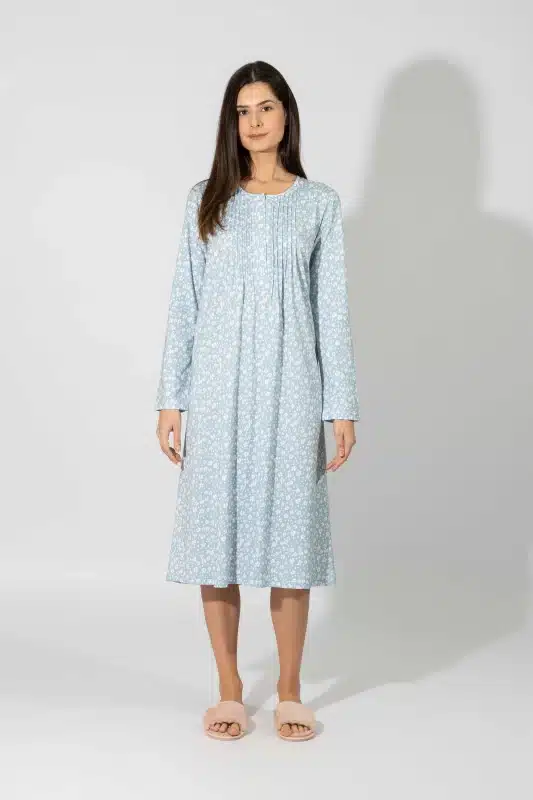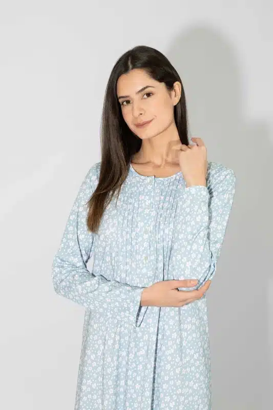 Χειμερινή νυχτικιά από 50% TENCEL™ Modal & 50% βαμβάκι, υψηλής ποιότητας. Η μίξη αυτών των δύο φυσικών ινών προσδίδει ένα εξαιρετικό αποτέλεσμα, ιδανικό για πυζάμες και άνετα ρούχα. Έχει V λαιμόκοψη, με πατιλέτα και κουμπιά και μήκος πάνω από το γόνατο. Αποτελεί ιδανική επιλογή για εγκύους και θηλάζουσες.