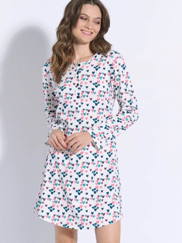 Χειμερινή, κοντή νυχτικιά από 100% βαμβακερό ίντερλοκ ύφασμα, υψηλής ποιότητας. Διαθέτει στρογγυλεμένο ποδόγυρο, μήκος πάνω από το γόνατο και μακριά πατιλέτα με κουμπάκια στο στήθος. Αποτελεί ιδανική επιλογή για εγκύους και θηλάζουσες.