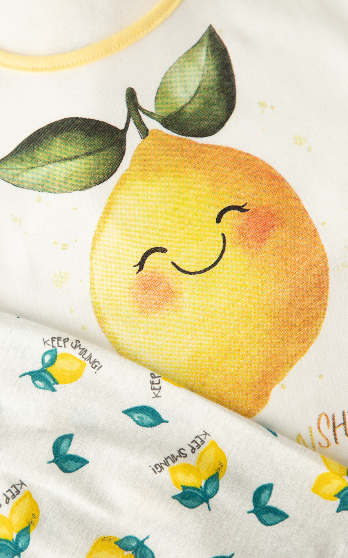 - Βρεφικό σετ πυζάμας για κορίτσι από 100% βαμβάκι εξαιρετικής ποιότητας, ιδανικό για άνετο και δροσερό ύπνο. Το σετ αποτελείται από αμάνικο τοπ με τύπωμα μπροστά και σορτς με all-over τύπωμα, προσφέροντας άνετη εφαρμογή και ελευθερία κινήσεων. Το ελαφρύ βαμβακερό ύφασμα είναι απαλό και διαπνέον, ιδανικό για τις ζεστές καλοκαιρινές νύχτες.