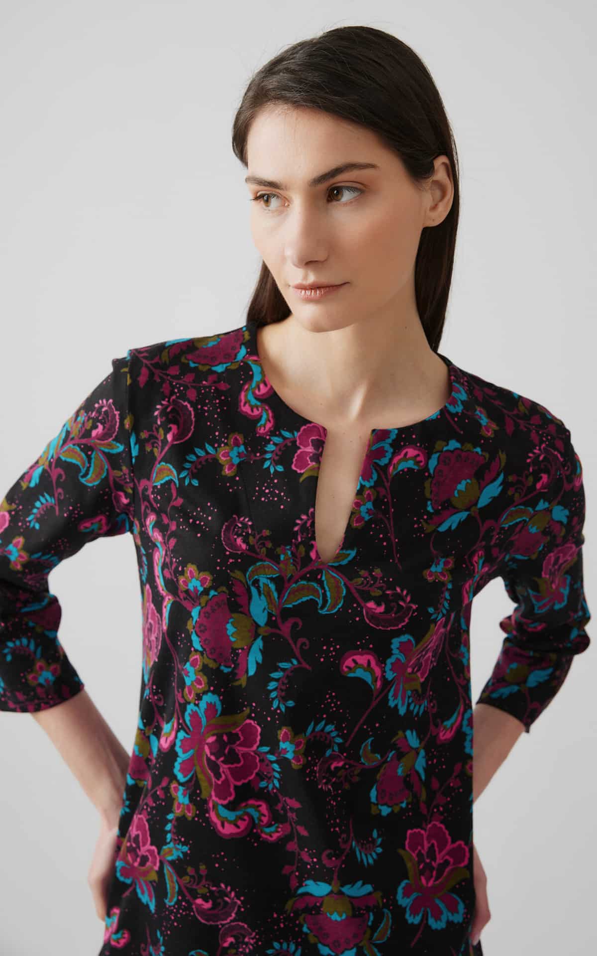 Χειμερινή μακριά νυχτικιά από 100% βαμβακερό τυπωμένο floral ύφασμα, υψηλής ποιότητας, με V λαιμόκοψη και μήκος κάτω απο το γόνατο.