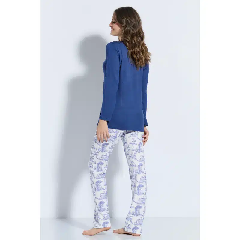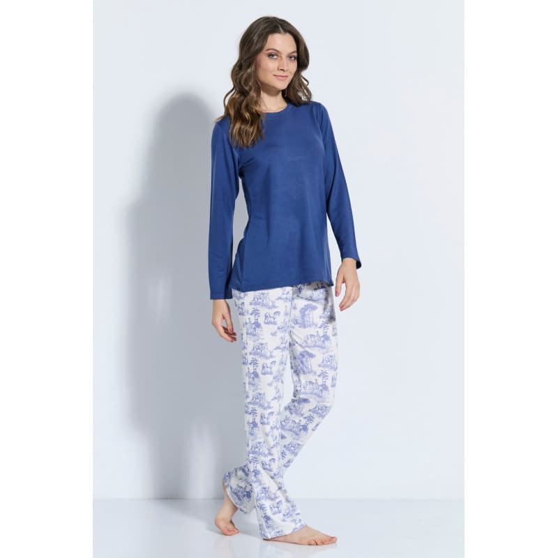 Γυναικεία πιτζάμα από την νέα συλλογή της Jeannette. Μονόχρωμη μπλούζα και ίσιο εμπριμέ παντελόνι.
