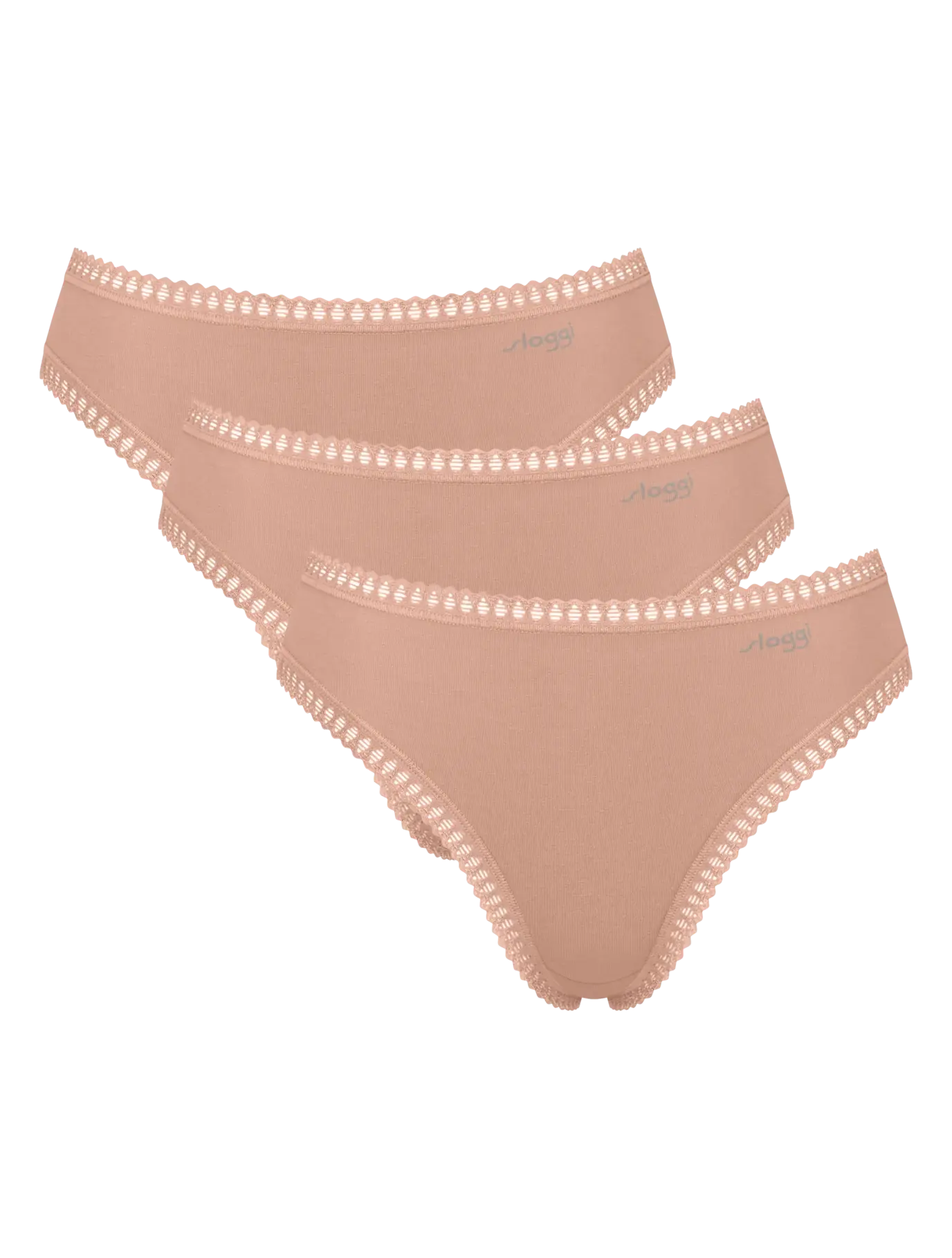 Γυναικεία σλιπάκια σε γραμμή TAI από τη σειρά της Sloggi GO CRUSH. Πακέτο με τρία σλιπάκια, από μαλακό, βαμβακέρο ύφασμα, για έξτρα άνεση και απαλότητα. Με δαντέλα περιμετρικά στα τελειώματα, η οποία δεν μαρκάρει μέσα από τα ρούχα.